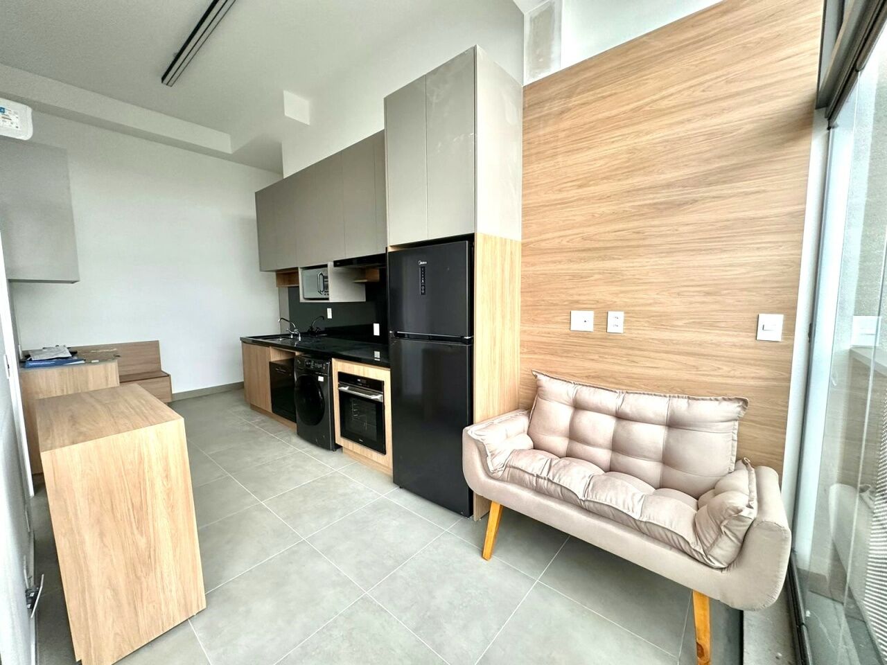 STUDIO: 01 DORM / LIVING 02 AMBTS / COZINHA / BANHEIROS / AS.